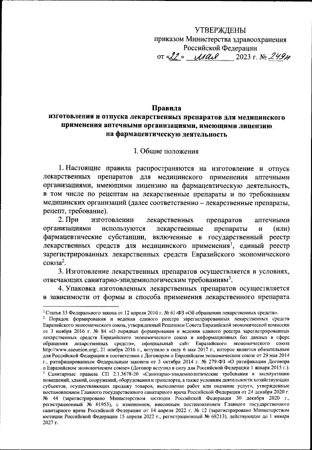 Приказ Министерства здравоохранения Российской Федерации от 22.05.2023 № 249н