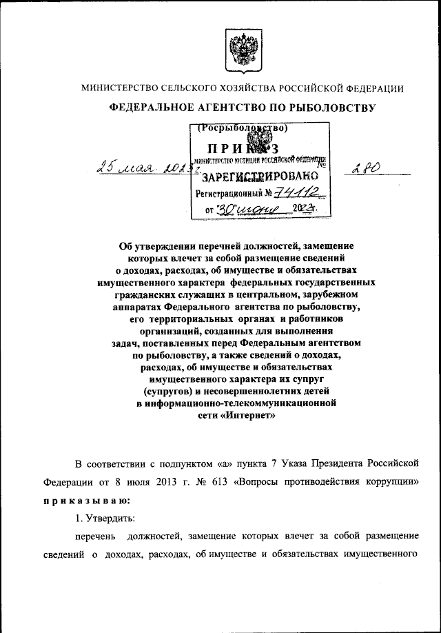 Приказ Федерального агентства по рыболовству от 25.05.2023 № 280