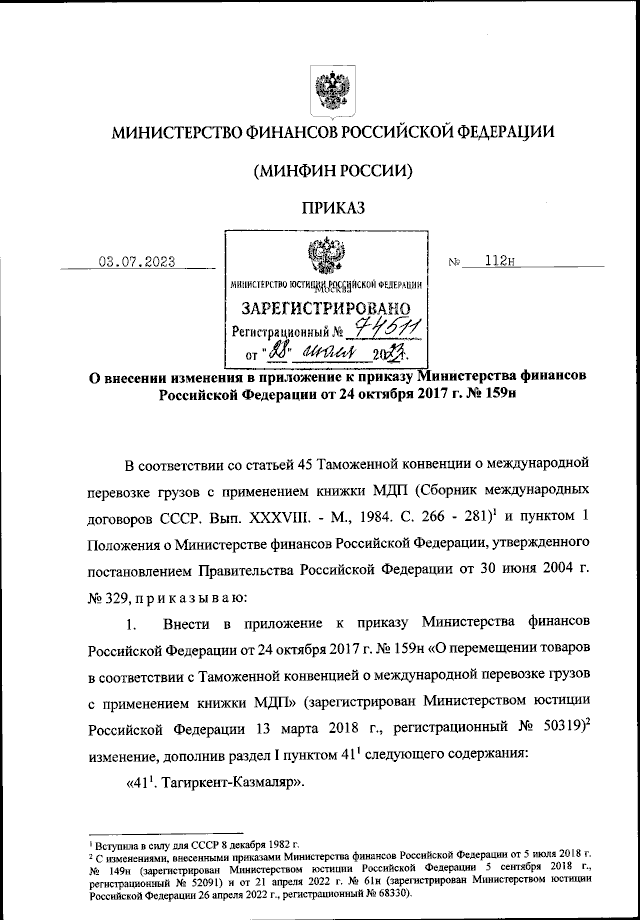 Приказ Министерства финансов Российской Федерации от 03.07.2023 № 112н