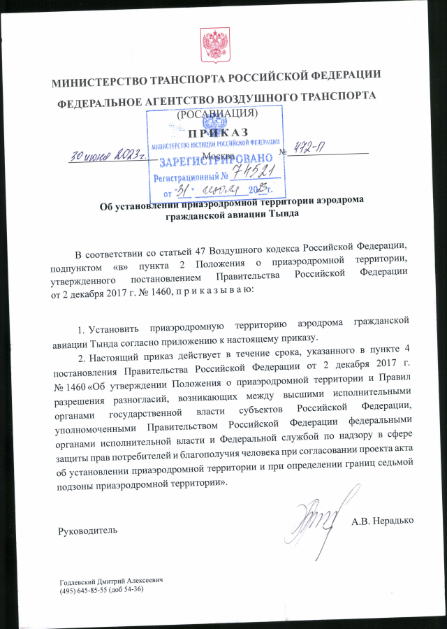 "Об установлении приаэродромной территории аэродрома гражданской авиации Тында"
