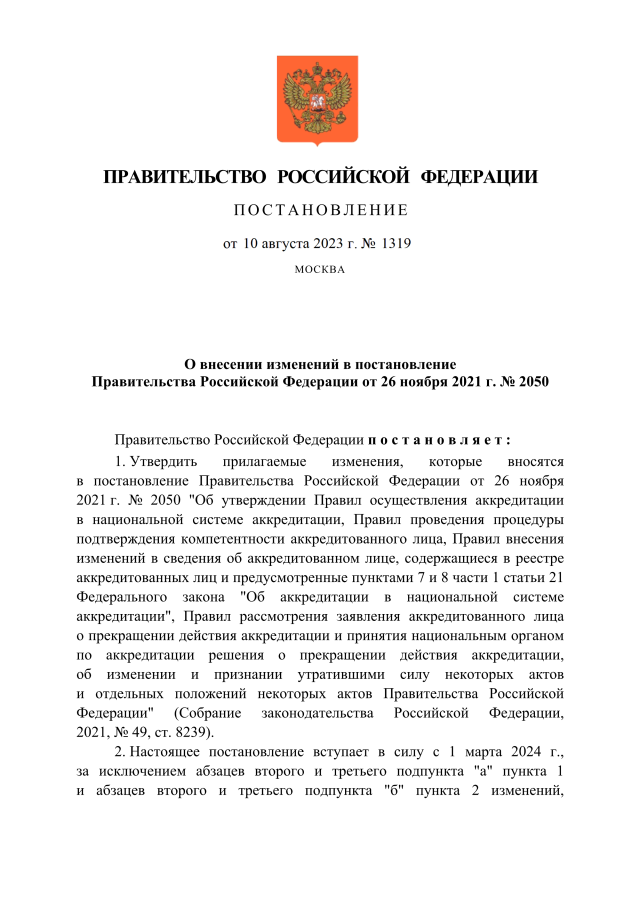 Постановление Правительства Российской Федерации от 10.08.2023 № 1319