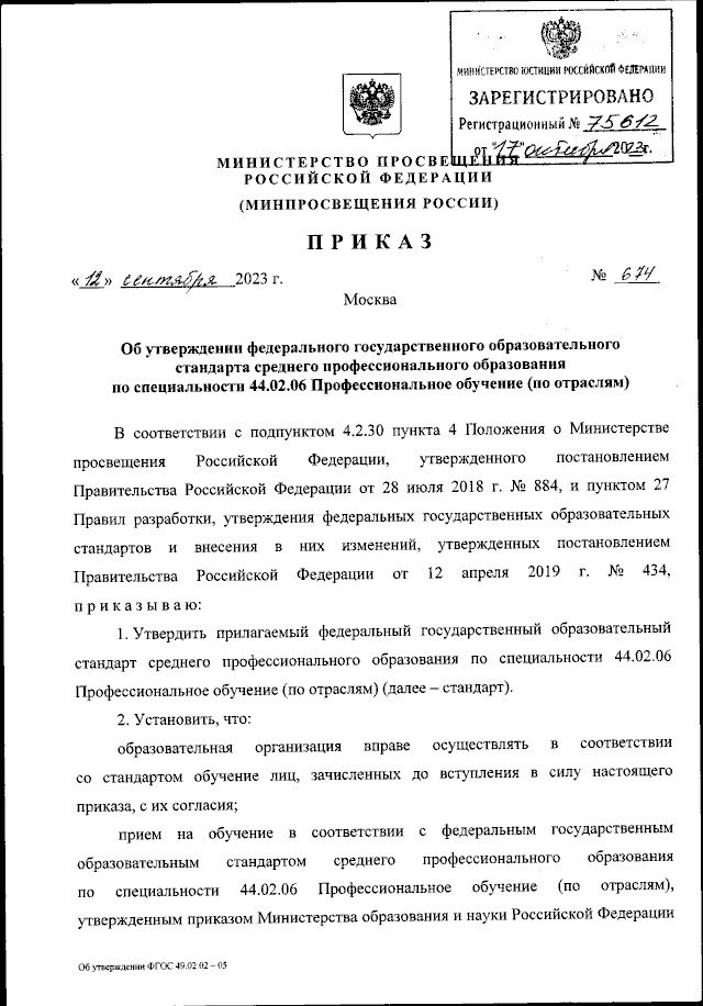 Приказ Министерства просвещения Российской Федерации от 12.09.2023 № 674