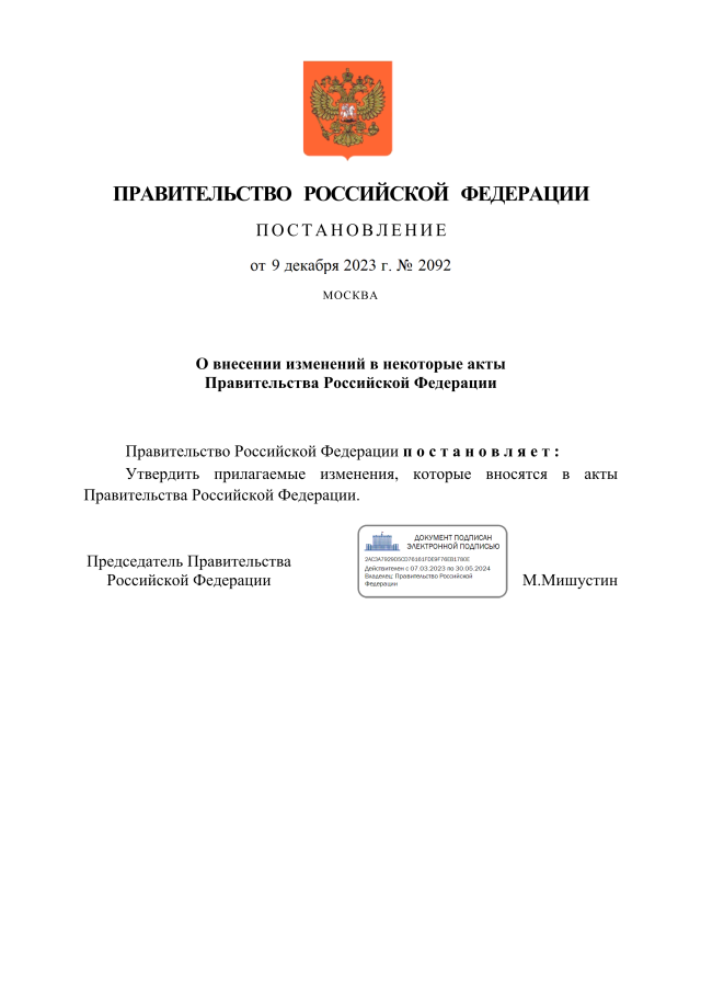 Постановление Правительства Российской Федерации от 09.12.2023 № 2092