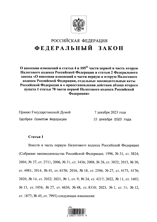 "О внесении изменений в статьи 4 и 105-26 части первой и часть вторую Налогового кодекса Российской Федерации и статью 2 Федерального закона "О внесении изменений в части первую и вторую Налогового кодекса Российской Федерации, отдельные законодательные акты Российской Федерации и о приостановлении действия абзаца второго пункта 1 статьи 78 части первой Налогового кодекса Российской Федерации"