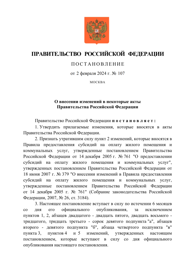 Постановление Правительства Российской Федерации от 02.02.2024 № 107