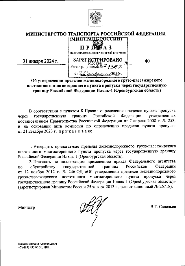 Приказ Министерства транспорта Российской Федерации от 31.01.2024 № 40