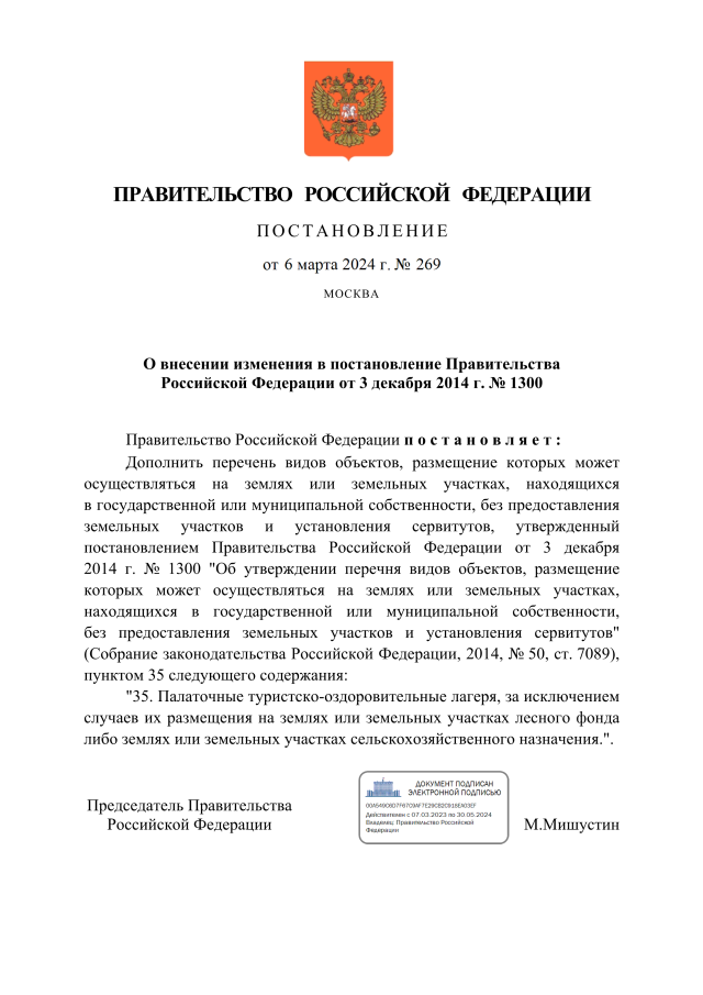 Постановление Правительства Российской Федерации от 06.03.2024 № 269