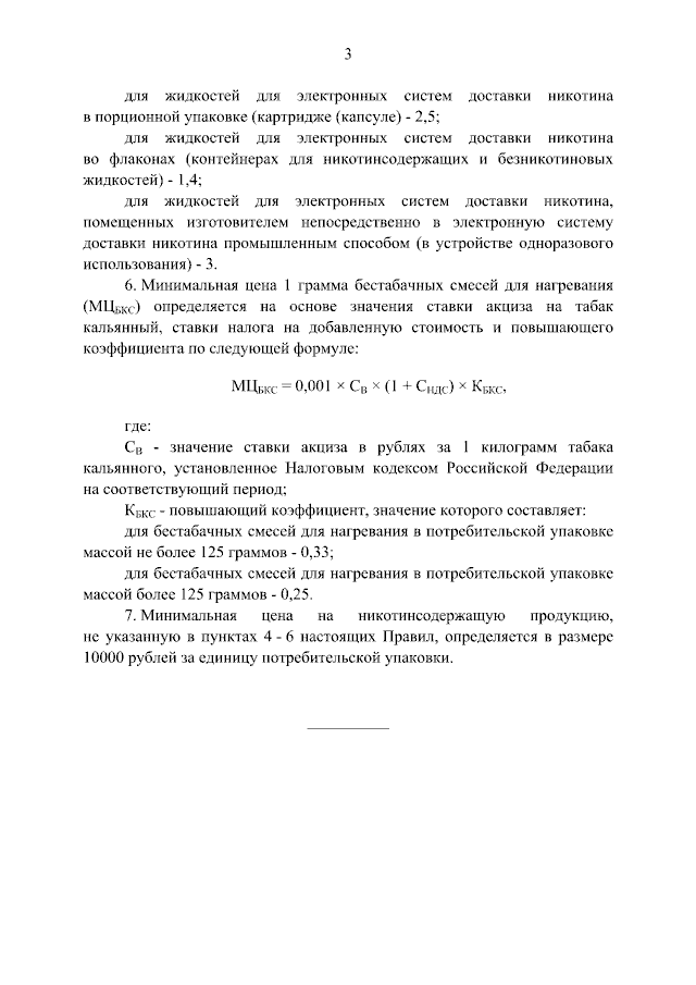 "О порядке определения минимальной цены на никотинсодержащую продукцию"
