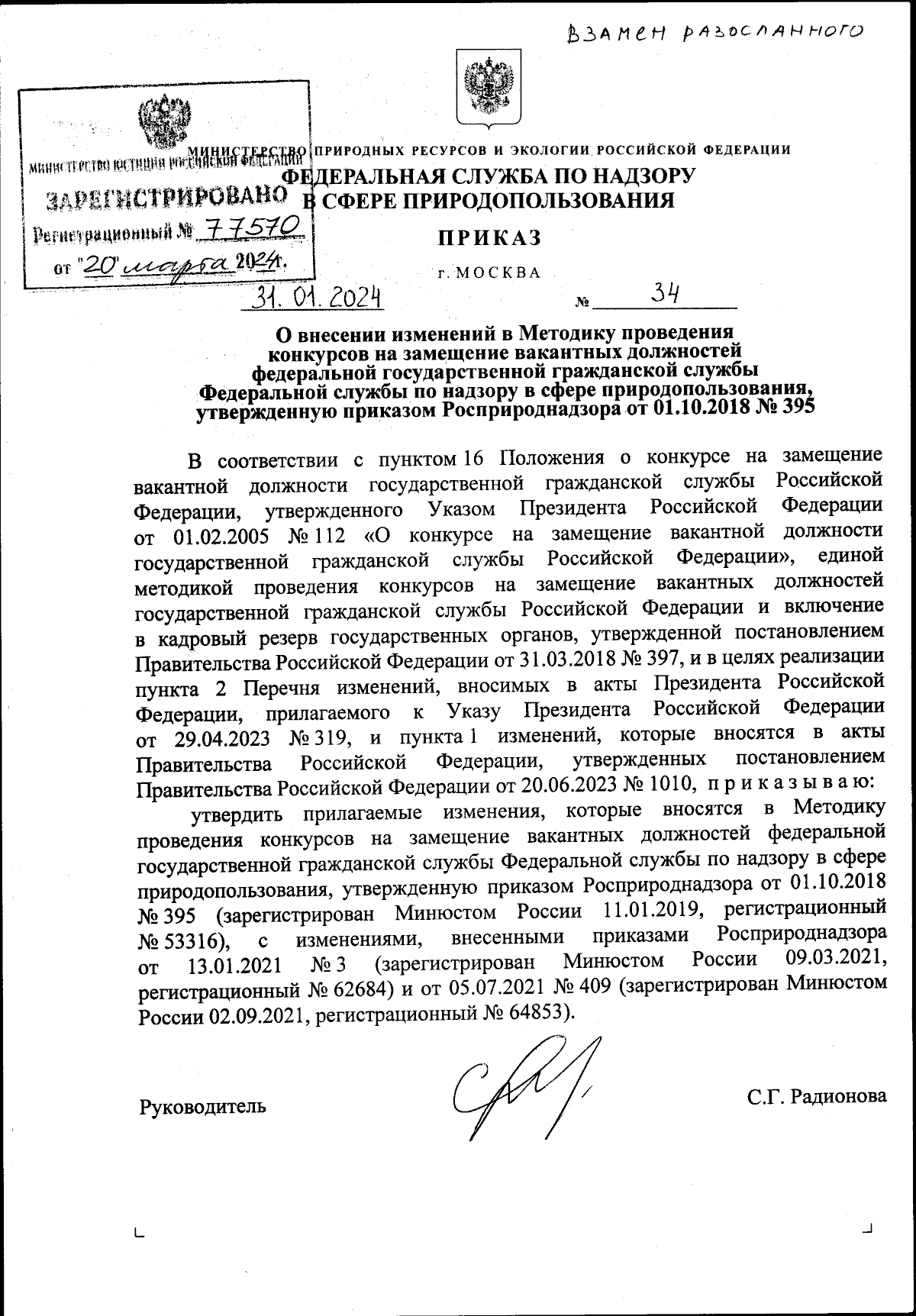 Приказ Федеральной службы по надзору в сфере природопользования от 31.01.2024 № 34