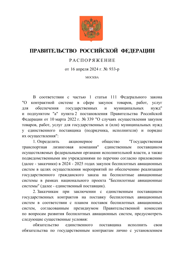 Распоряжение Правительства Российской Федерации от 16.04.2024 № 933-р