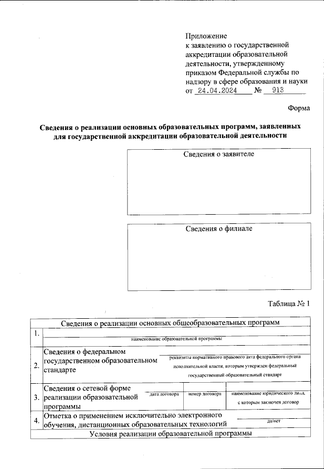 Приказ Федеральной службы по надзору в сфере образования и науки от 24.04.2024 № 913