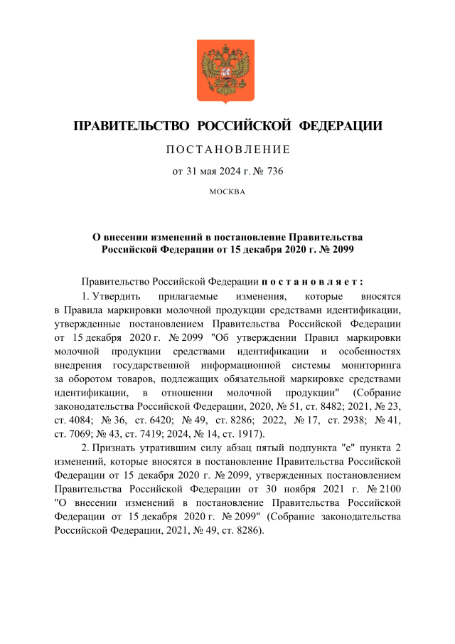 Постановление Правительства Российской Федерации от 31.05.2024 № 736