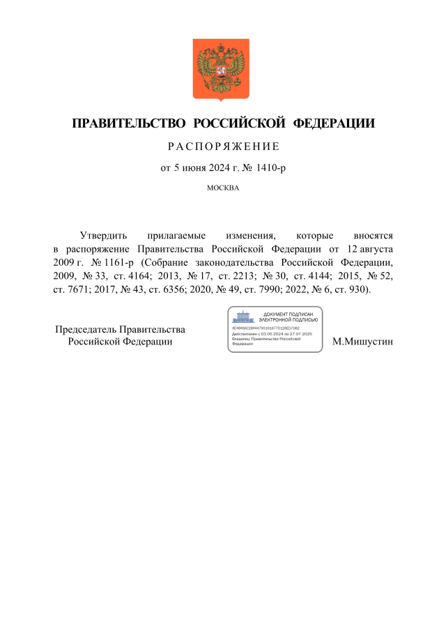 Распоряжение Правительства Российской Федерации от 05.06.2024 № 1410-р