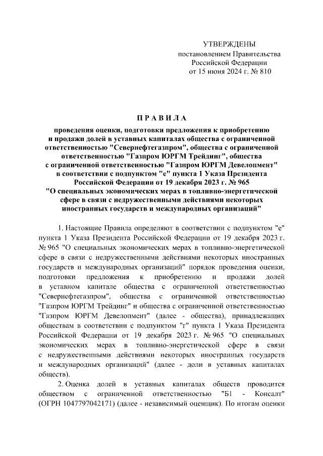 Постановление Правительства Российской Федерации от 15.06.2024 № 810