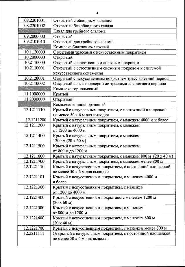 "Об утверждении классификатора объектов спорта"