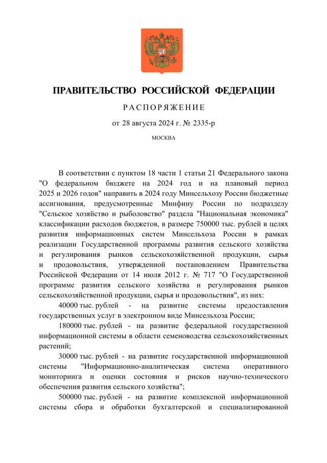 Распоряжение Правительства Российской Федерации от 28.08.2024 № 2335-р
