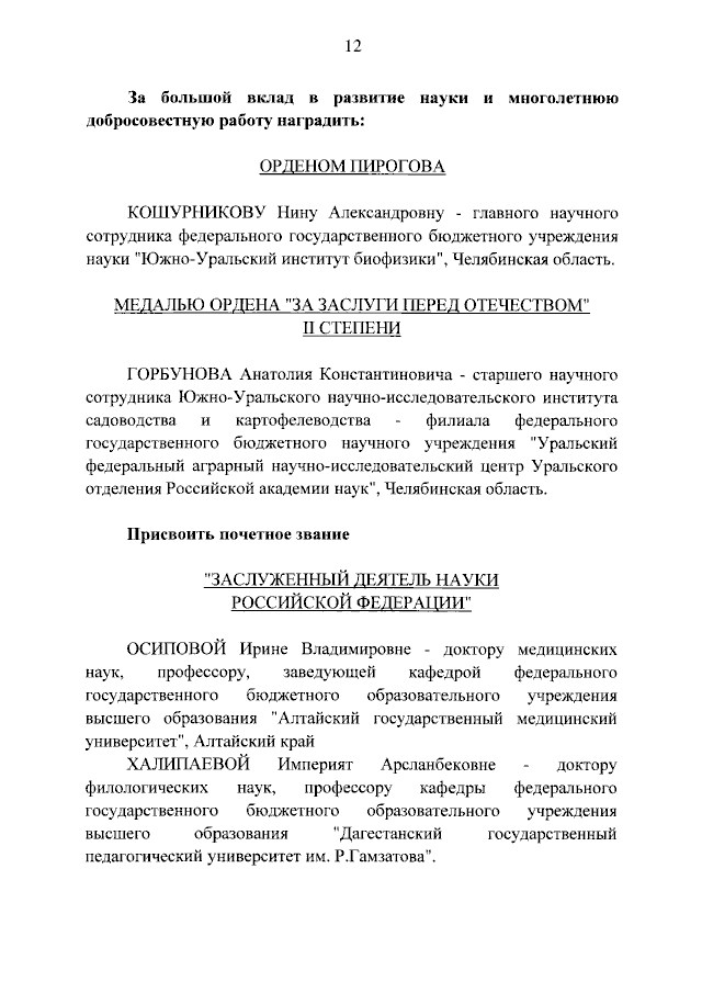 "О награждении государственными наградами Российской Федерации"