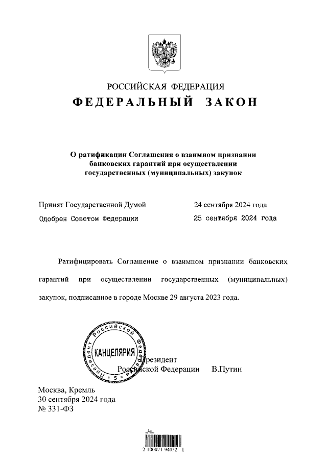 Федеральный закон от 30.09.2024 № 331-ФЗ