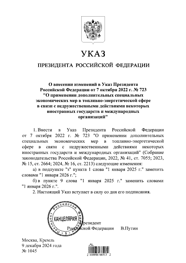 Указ Президента Российской Федерации от 09.12.2024 № 1045