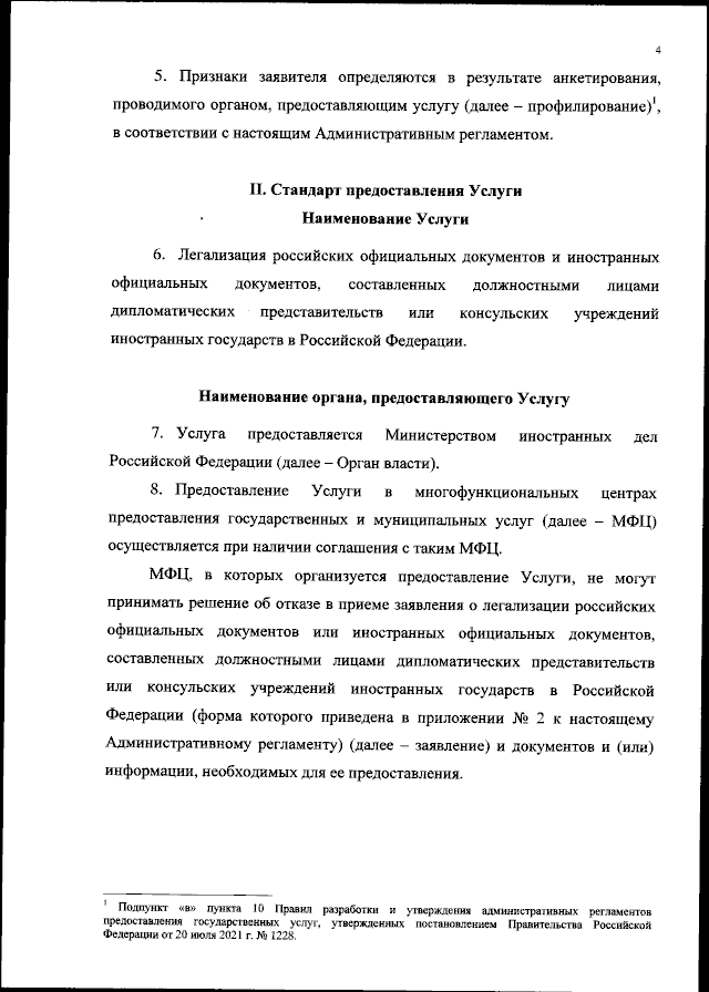 "Об утверждении Административного регламента Министерства иностранных дел Российской Федерации по предоставлению государственной услуги "Легализация российских официальных документов и иностранных официальных документов, составленных должностными лицами дипломатических представительств или консульских учреждений иностранных государств в Российской Федерации"