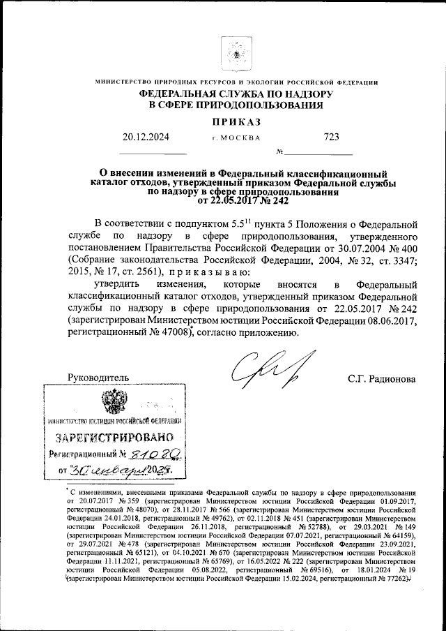 Приказ Федеральной службы по надзору в сфере природопользования от 20.12.2024 № 723