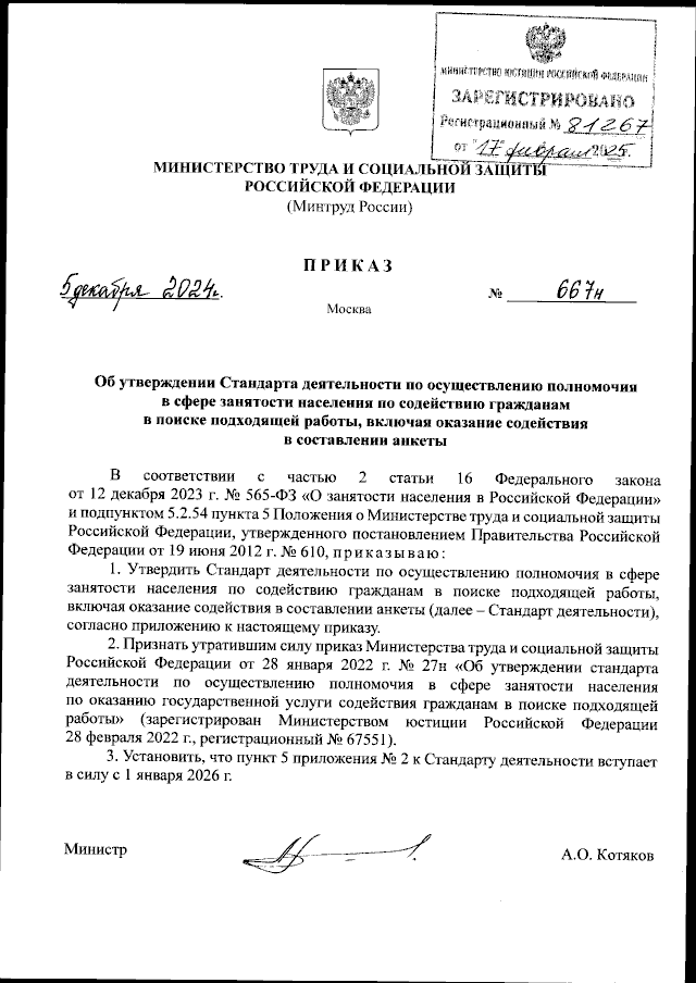 Приказ Министерства труда и социальной защиты Российской Федерации от 05.12.2024 № 667н