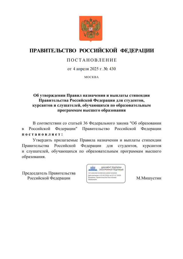 Постановление Правительства Российской Федерации от 04.04.2025 № 430