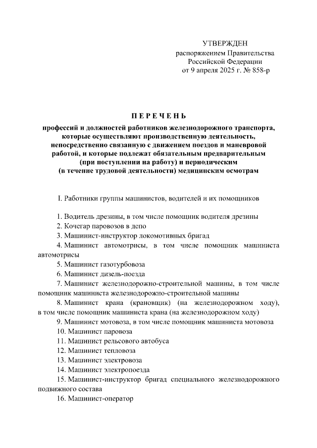 Распоряжение Правительства Российской Федерации от 09.04.2025 № 858-р
