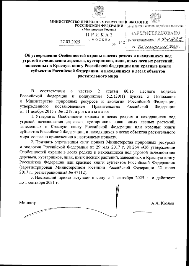 Приказ Министерства природных ресурсов и экологии Российской Федерации от 27.03.2025 № 142