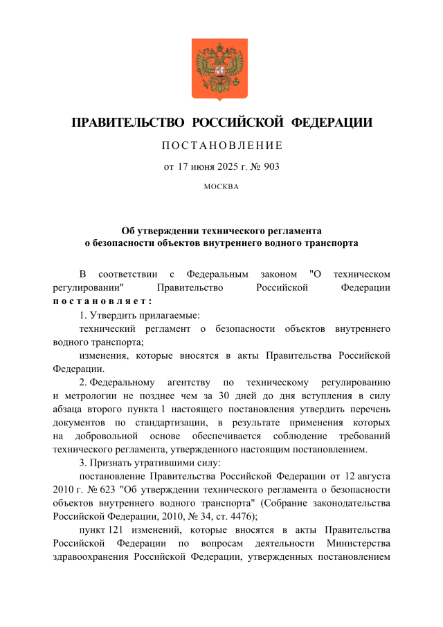 Постановление Правительства Российской Федерации от 17.06.2025 № 903