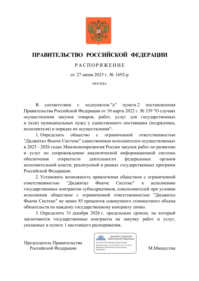 Распоряжение Правительства Российской Федерации от 27.06.2025 № 1692-р