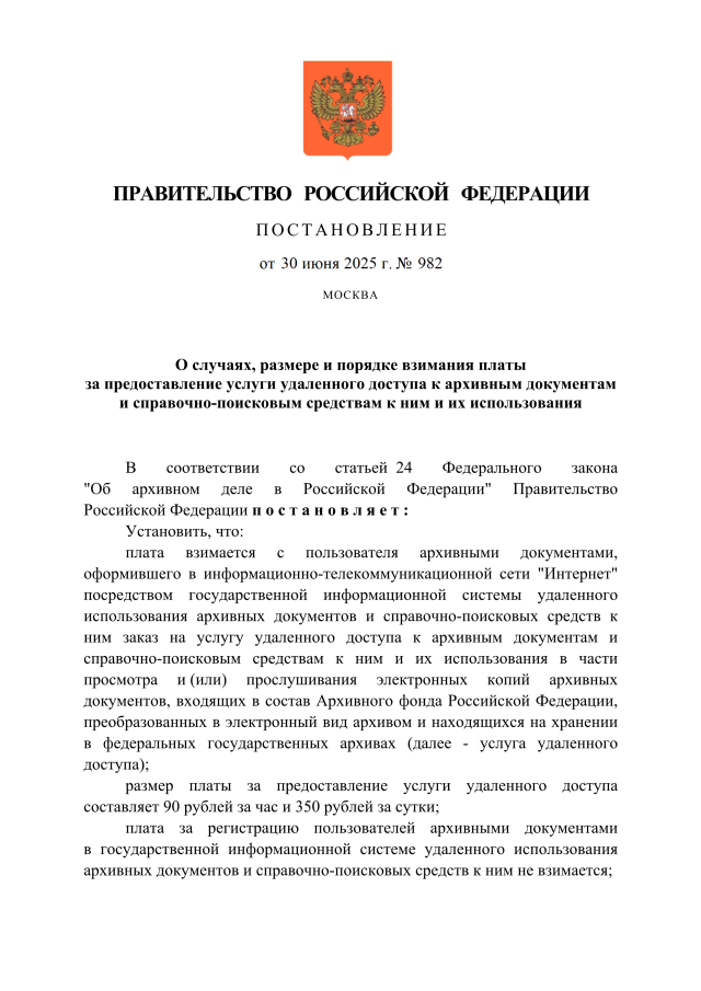Постановление Правительства Российской Федерации от 30.06.2025 № 982