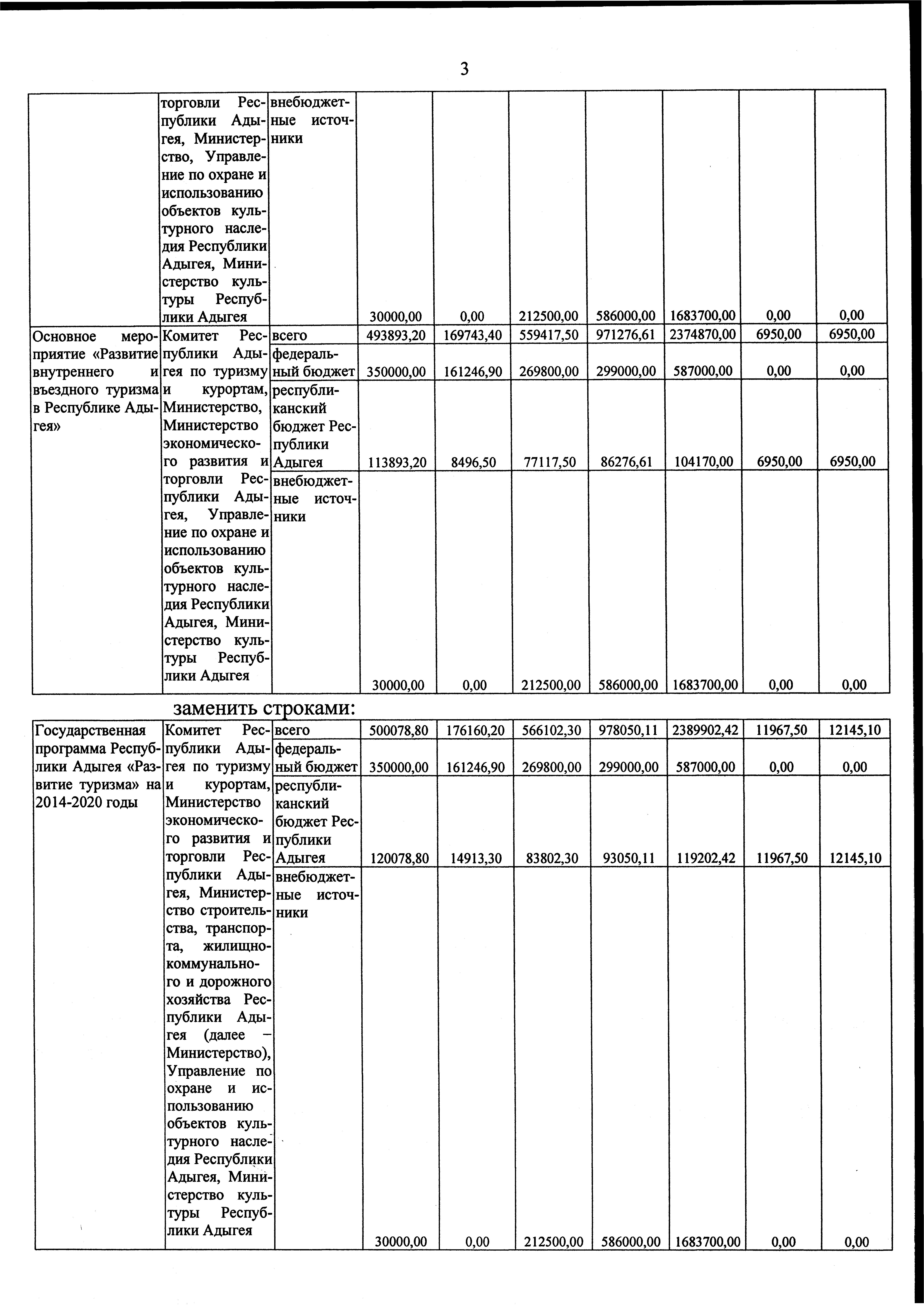 "О внесении изменений в государственную программу Республики Адыгея "Развитие туризма" на 2014-2020 годы"