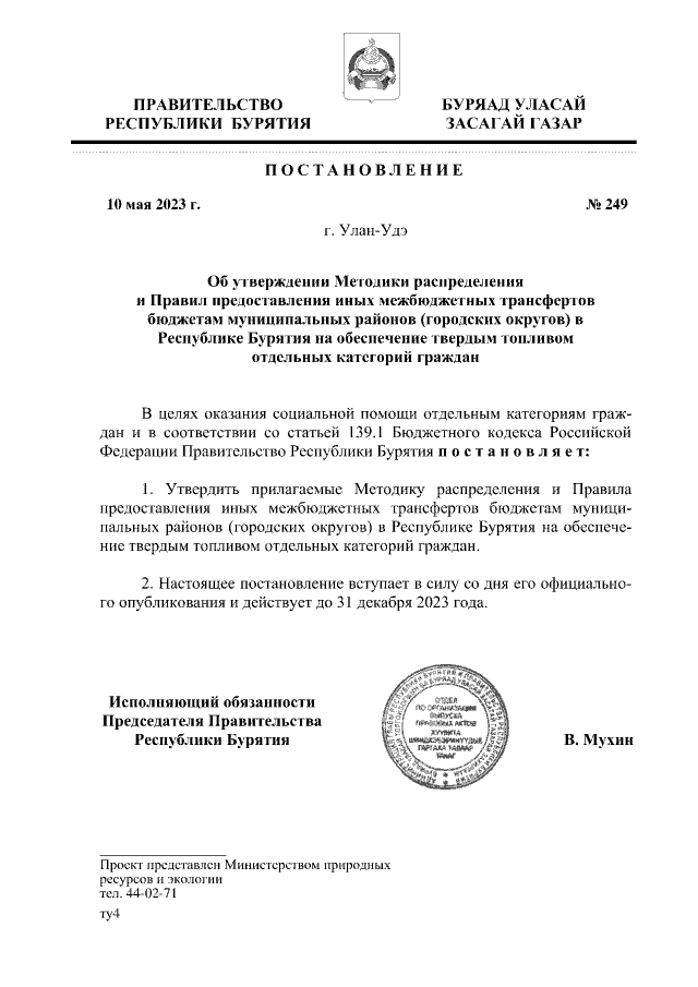Постановление Правительства Республики Бурятия от 10.05.2023 № 249