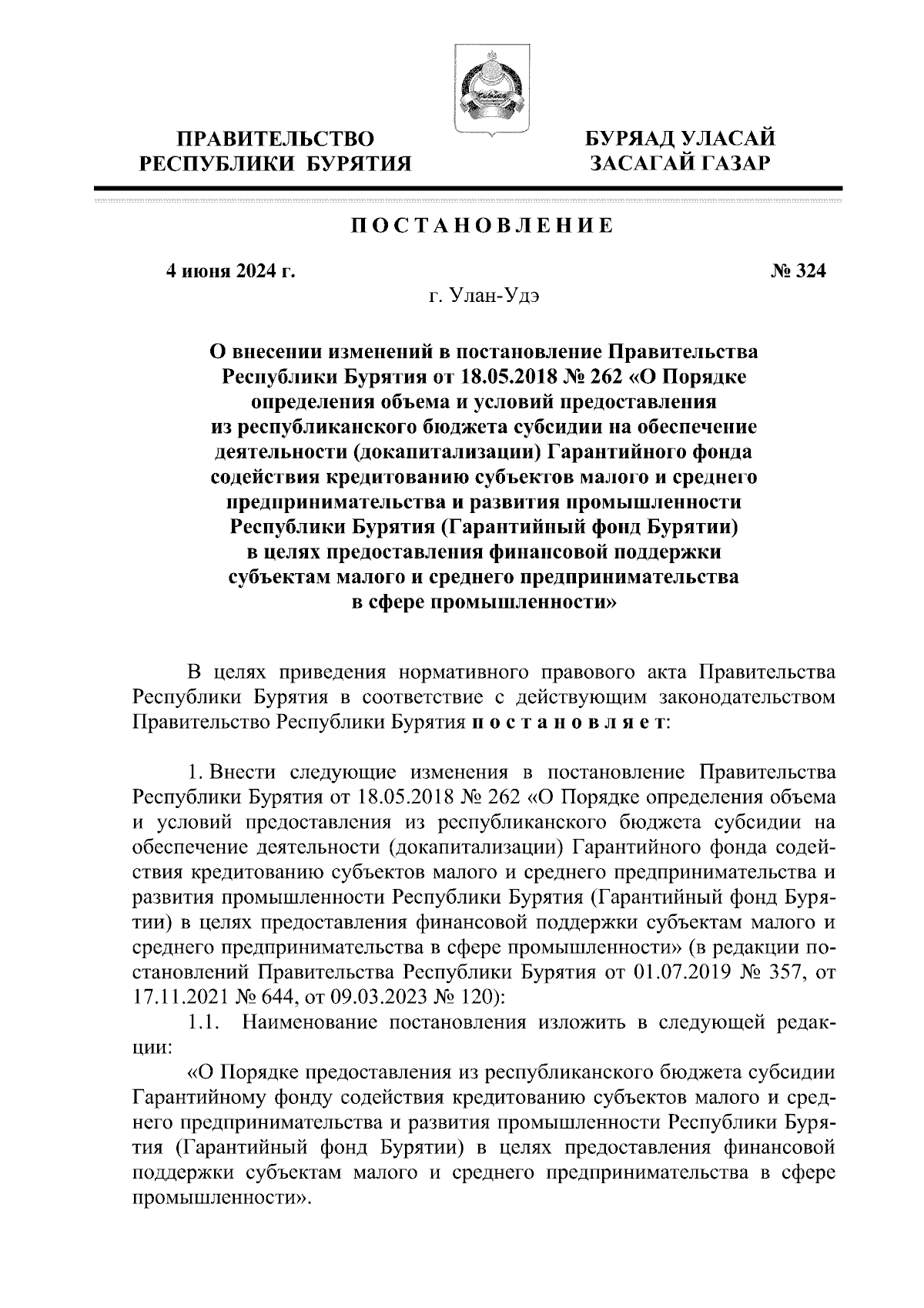 Постановление Правительства Республики Бурятия от 04.06.2024 № 324