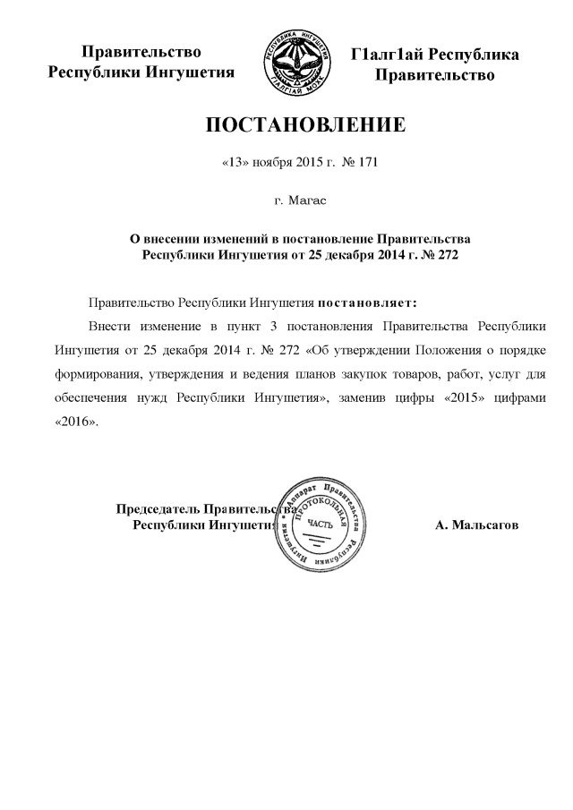 Постановление Правительства Республики Ингушетия от 13.11.2015 № 171