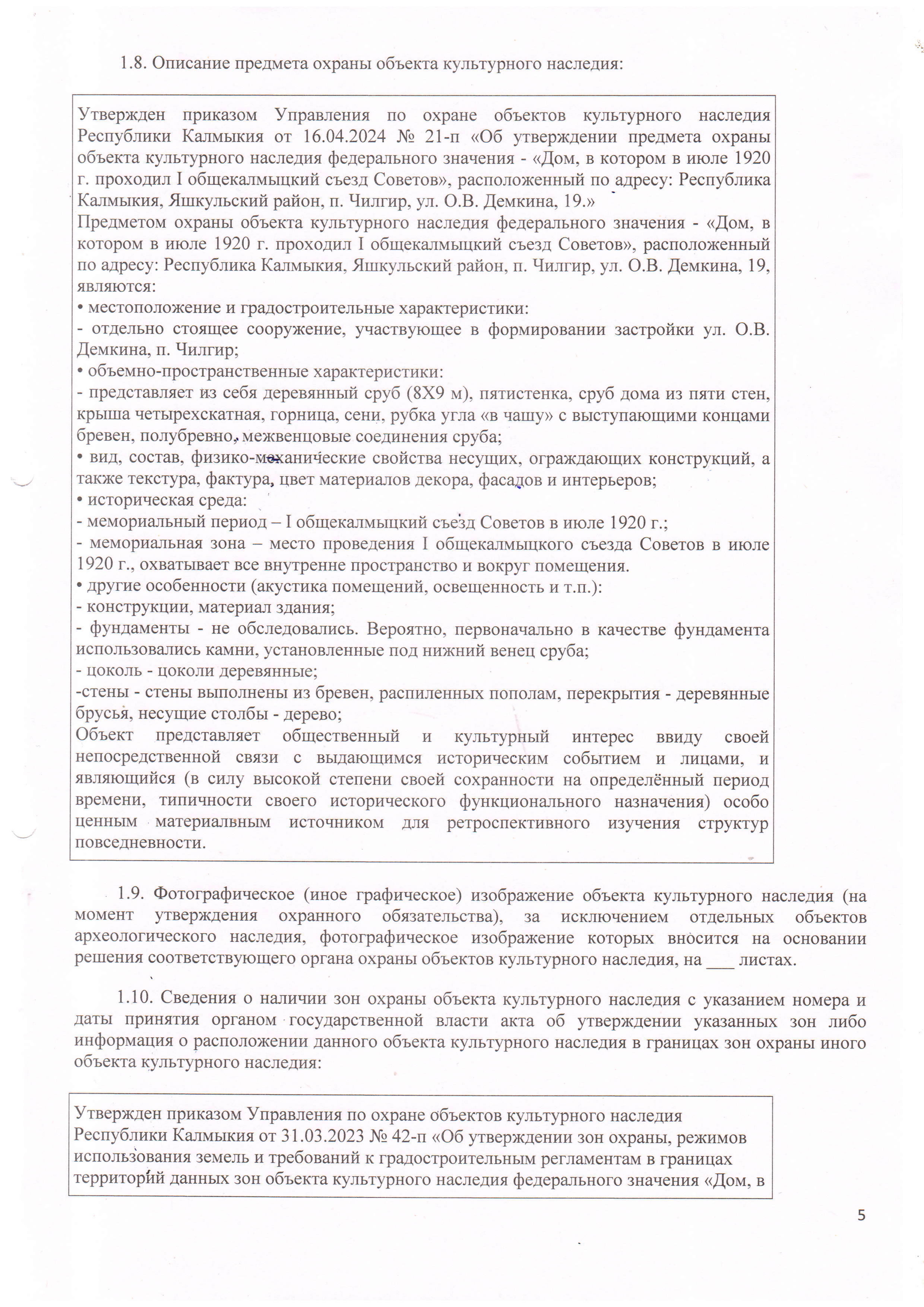 "Об утверждении охранного обязательства собственника или иного законного владельца объекта культурного наследия федерального значения "Дом, в котором в июле 1920 г. проходил I общекалмыцкий съезд Советов"