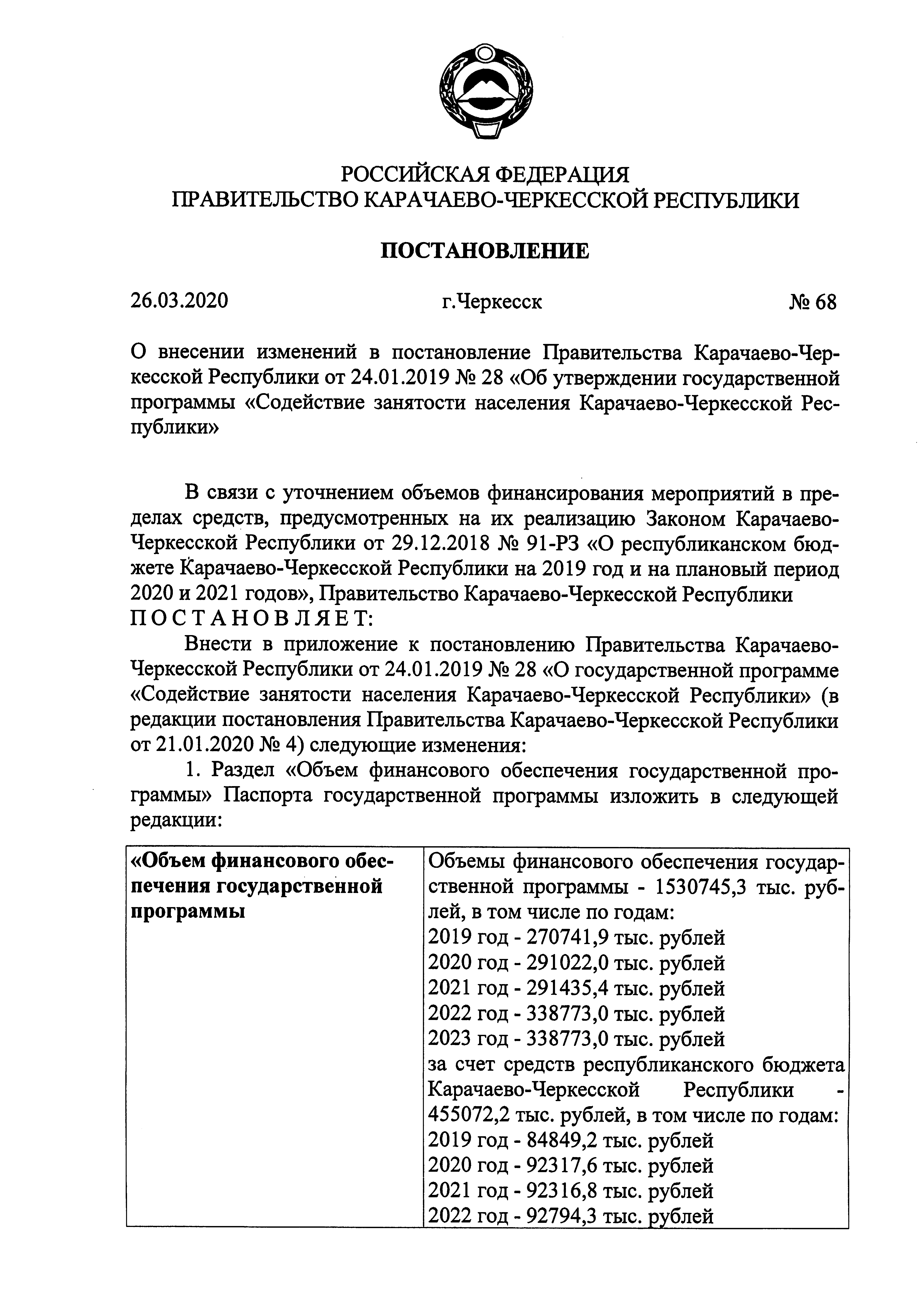 Постановление Правительства Карачаево-Черкесской Республики от 26.03.2020 № 68