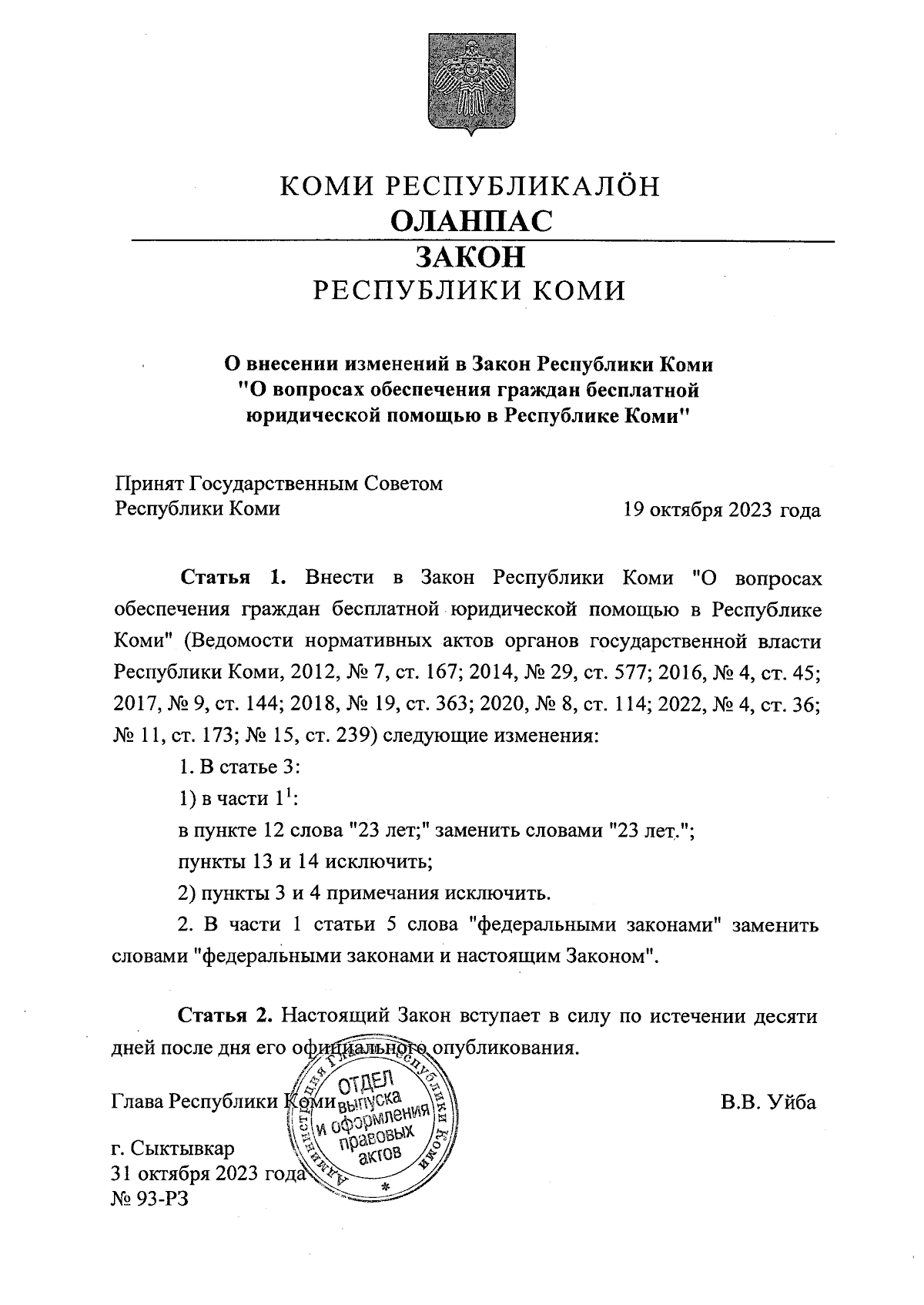 Закон Республики Коми от 31.10.2023 № 93-РЗ