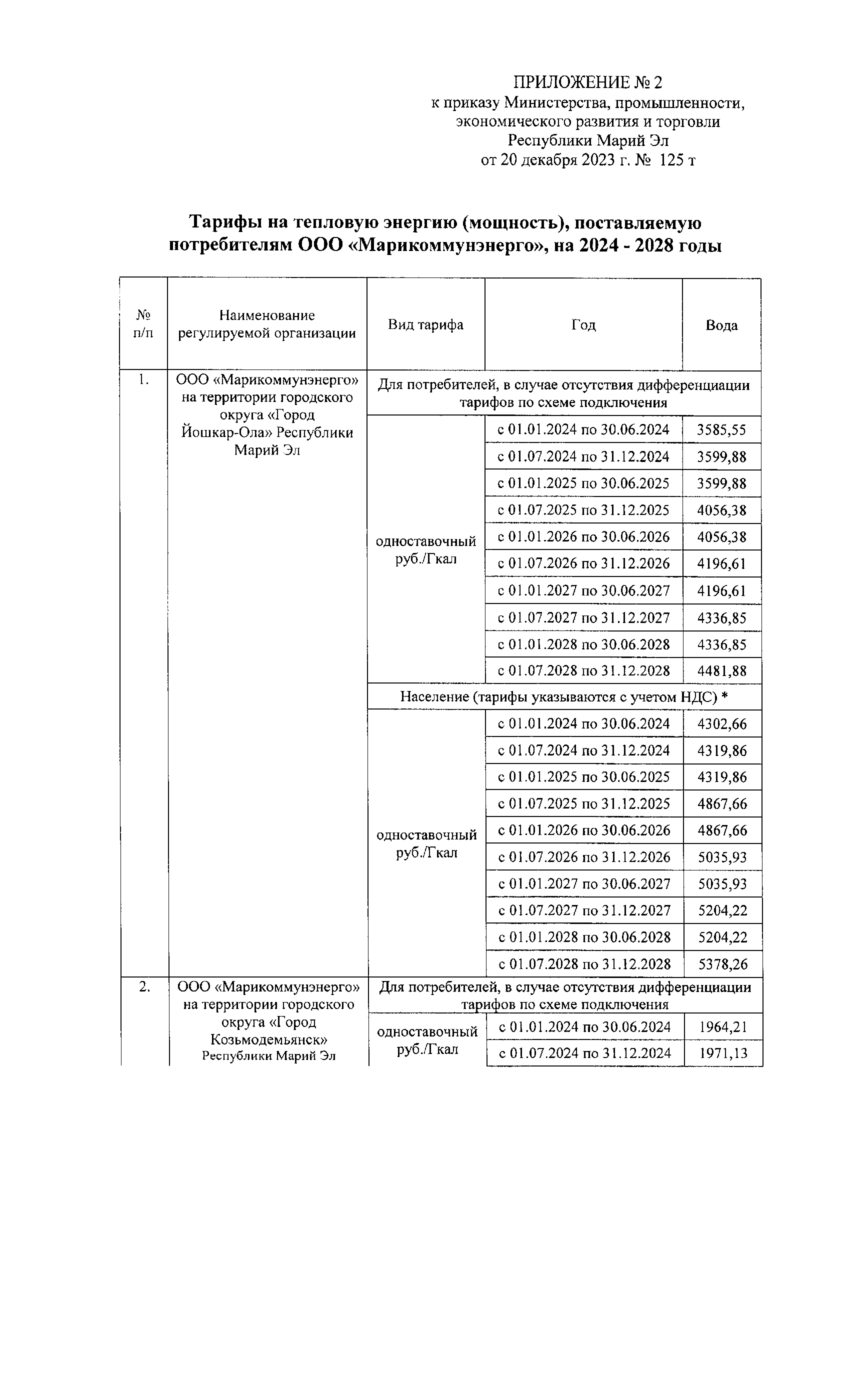 Приказ Министерства промышленности, экономического развития и торговли Республики Марий Эл от 20.12.2023 № 125 т