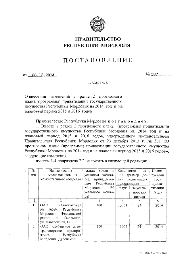 Постановление Правительства Республики Мордовия от 08.12.2014 № 587