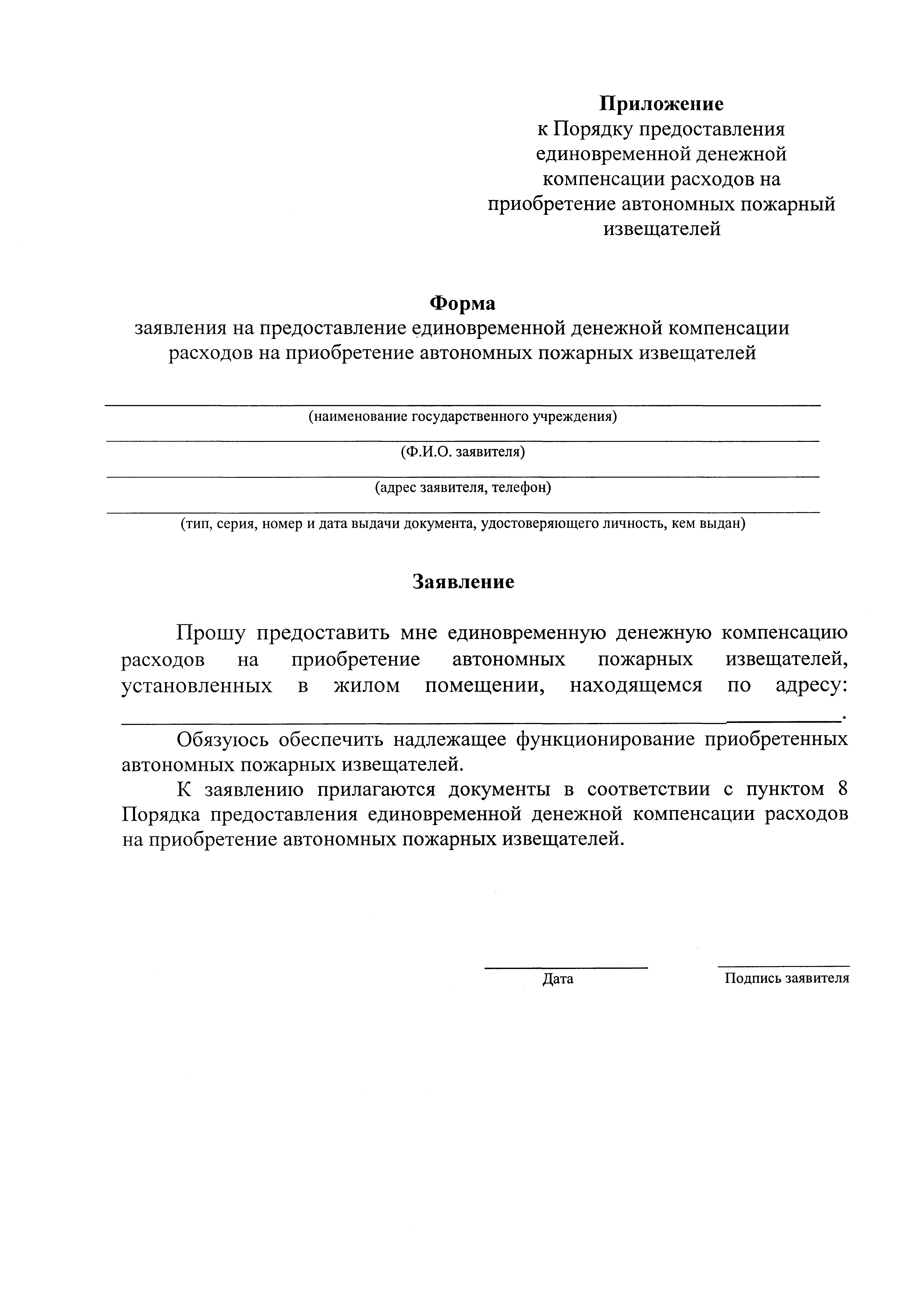 "О Порядке предоставления единовременной денежной компенсации расходов на приобретение автономных пожарных извещателей"