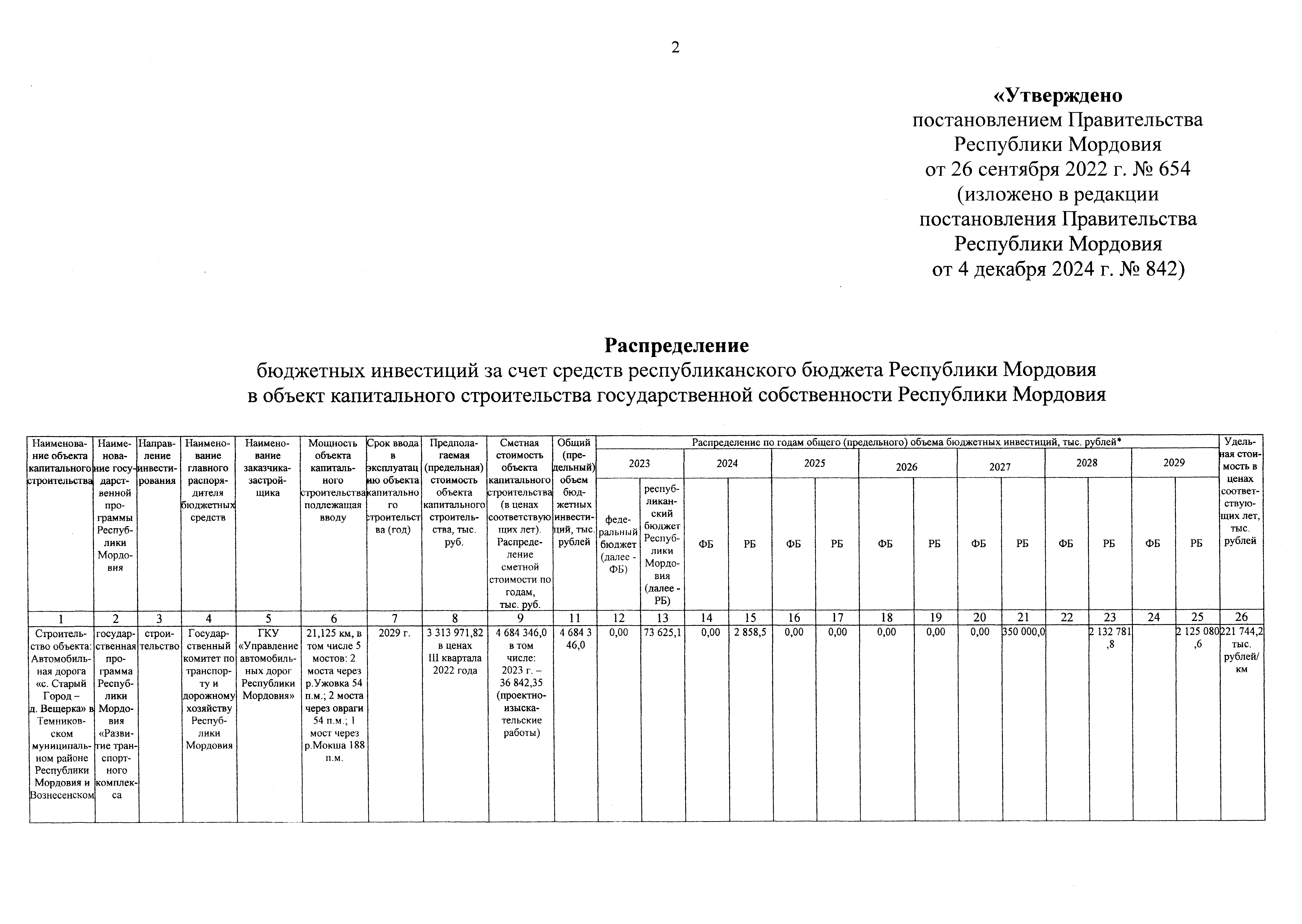 Постановление Правительства Республики Мордовия от 04.12.2024 № 842