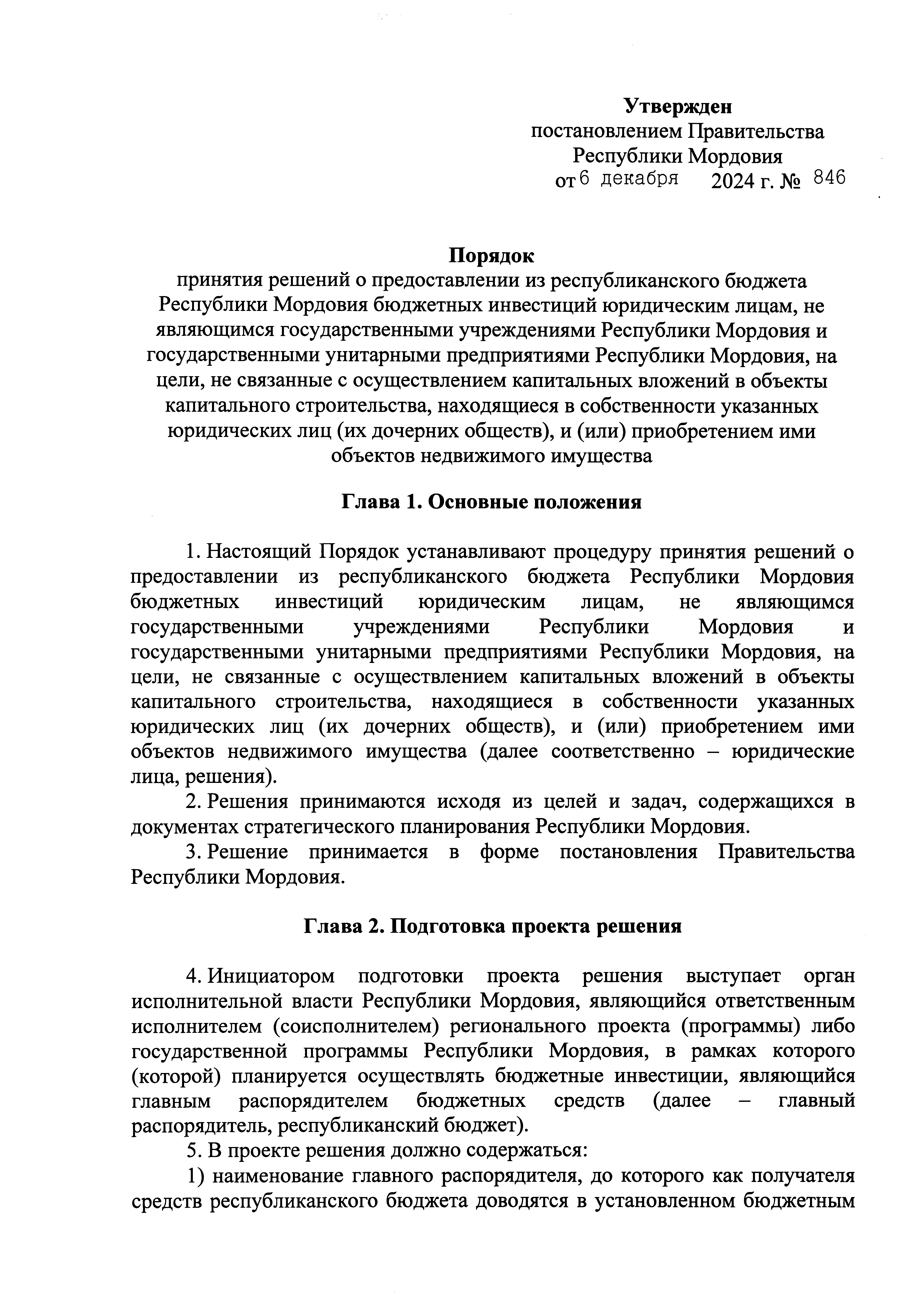 Постановление Правительства Республики Мордовия от 06.12.2024 № 846