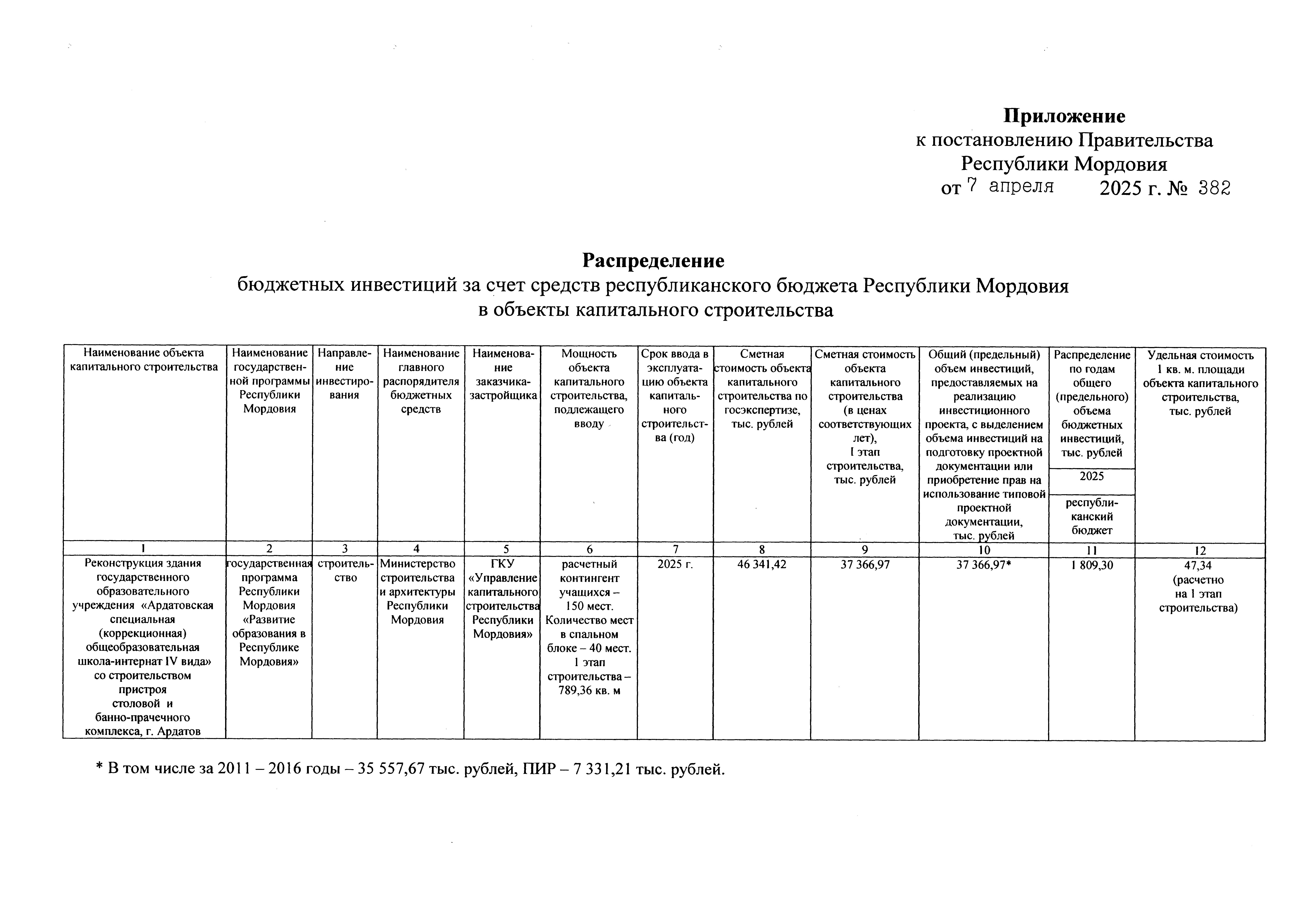 Постановление Правительства Республики Мордовия от 07.04.2025 № 382