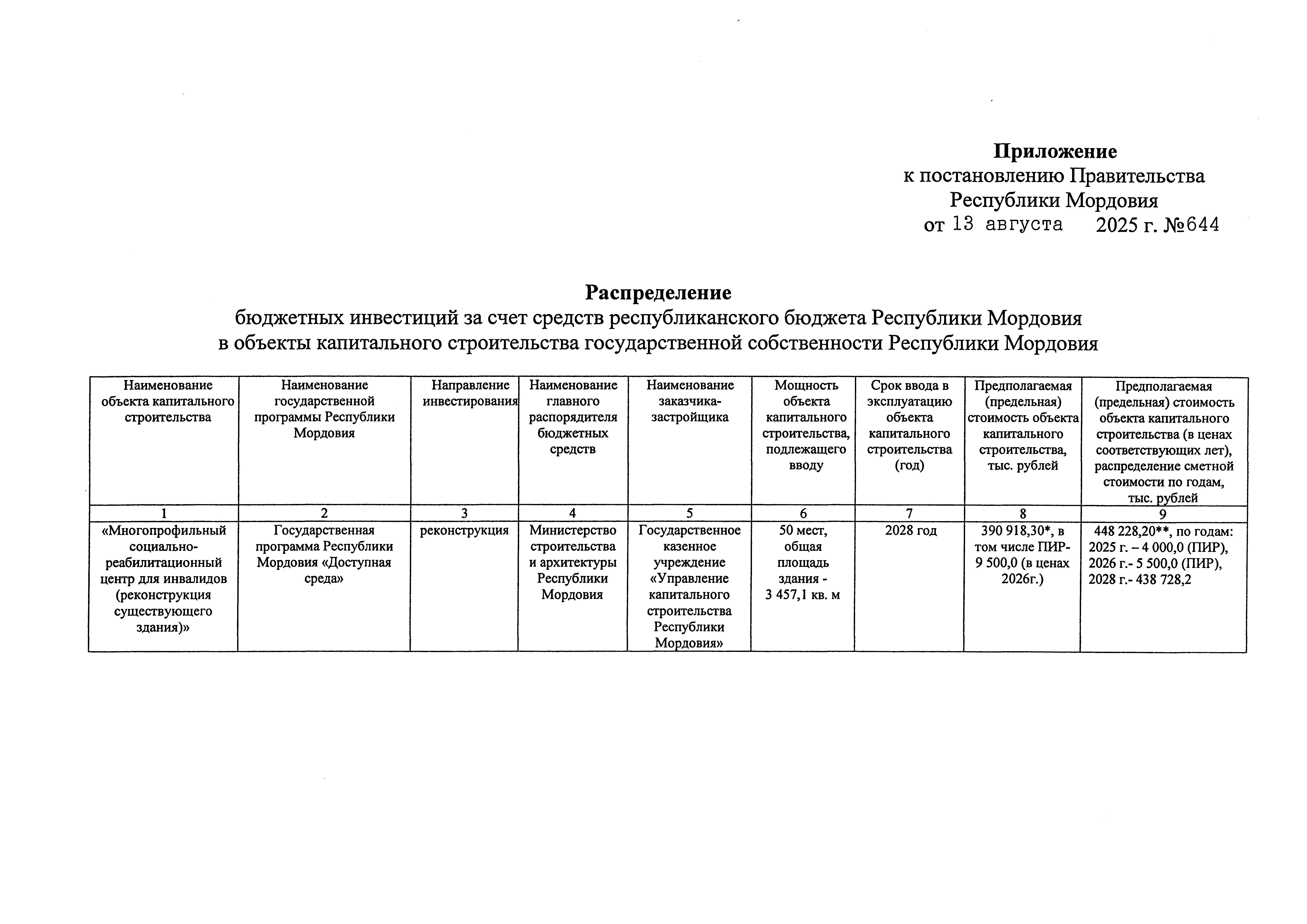 Постановление Правительства Республики Мордовия от 13.08.2025 № 644