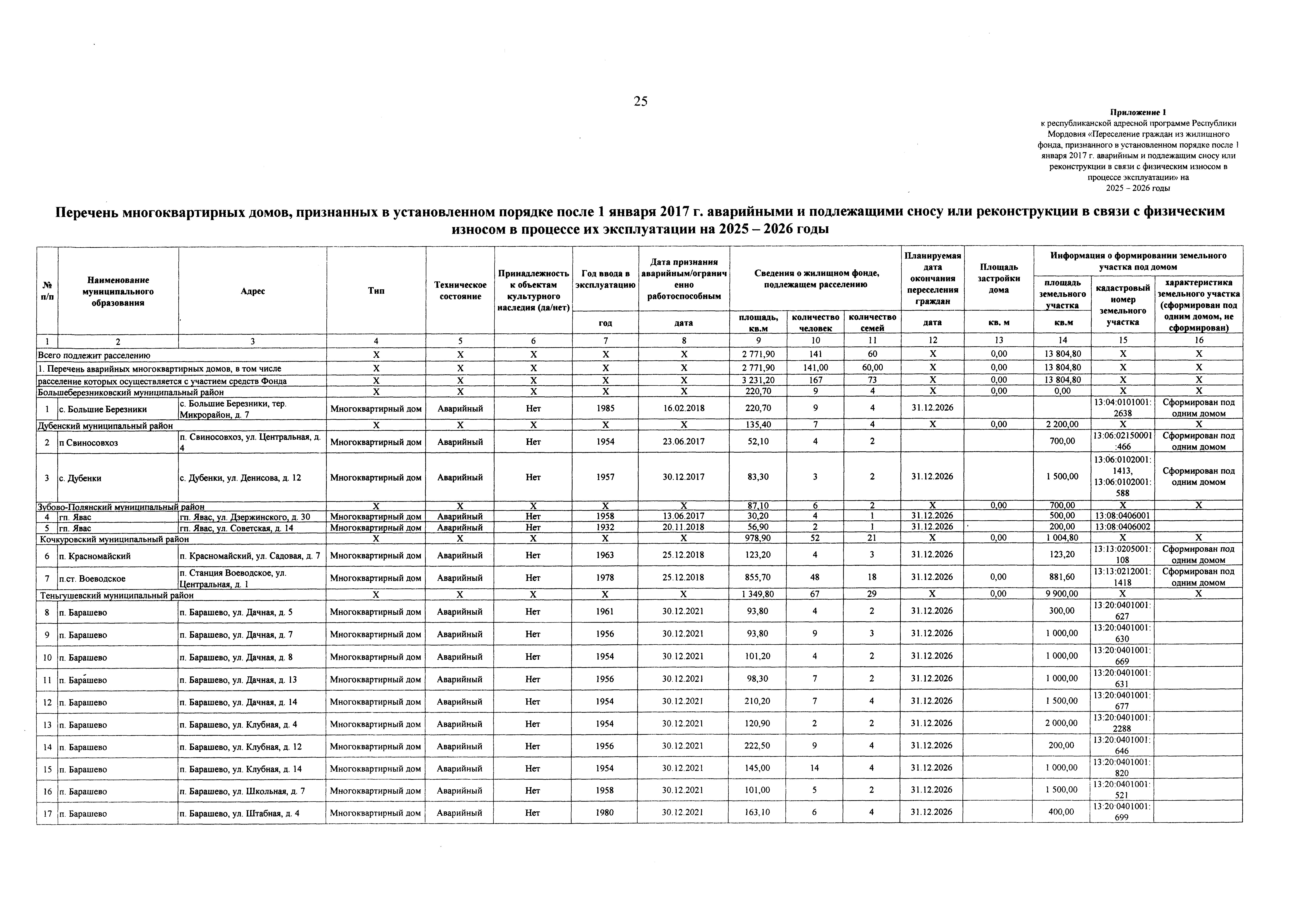 "О республиканской адресной программе "Переселение граждан из жилищного фонда, признанного в установленном порядке после 1 января 2017 г. аварийным и подлежащим сносу или реконструкции в связи с физическим износом в процессе эксплуатации" на 2025–2026 годы"