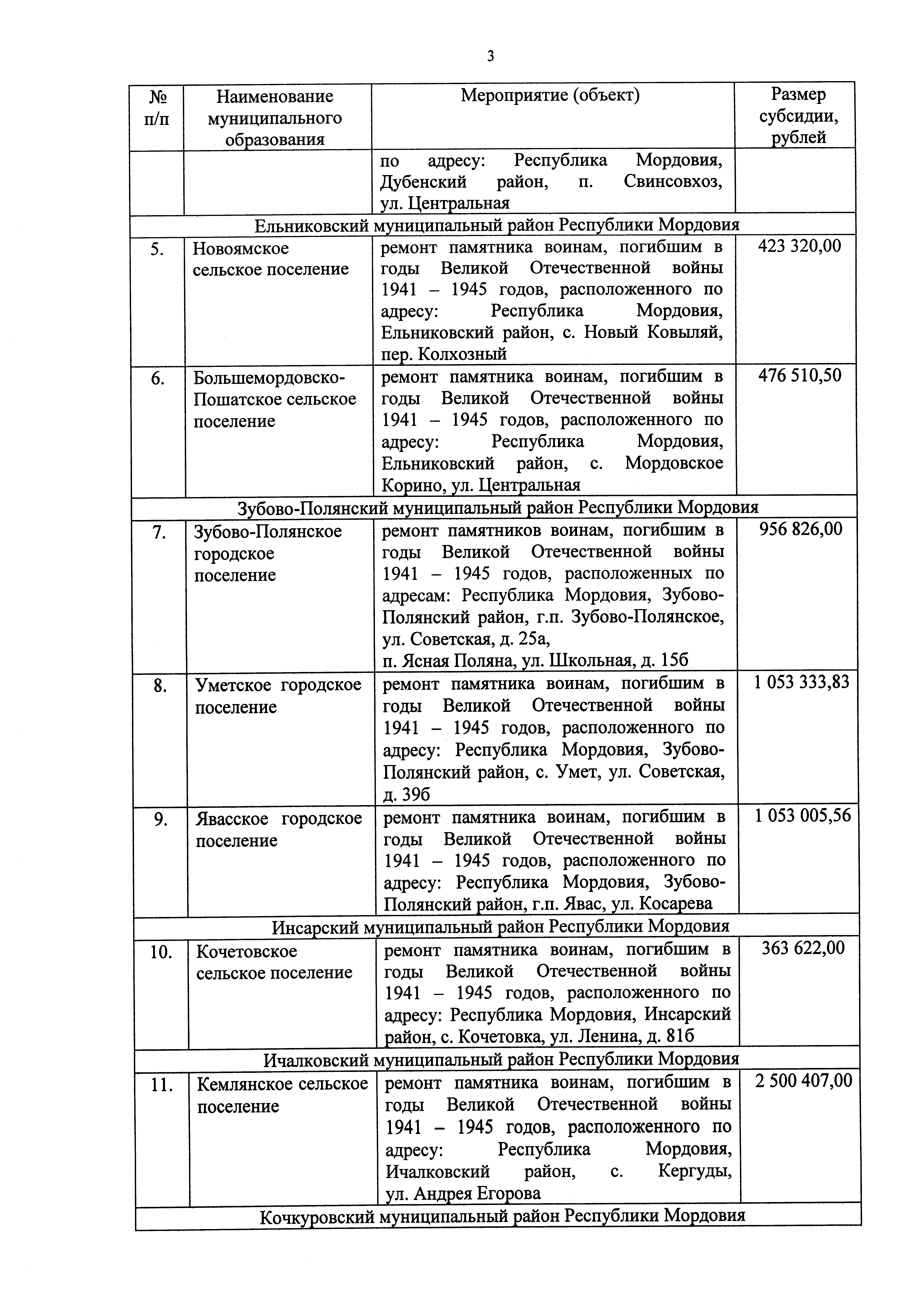 "О внесении изменения в распределение субсидий из республиканского бюджета Республики Мордовия бюджетам муниципальных образований в Республике Мордовия на софинансирование мероприятий по благоустройству территорий муниципальных образований (в части изготовления, установки, капитального ремонта и ремонта памятников воинам, погибшим в годы Великой Отечественной войны 1941 – 1945 годов) на 2025 год"