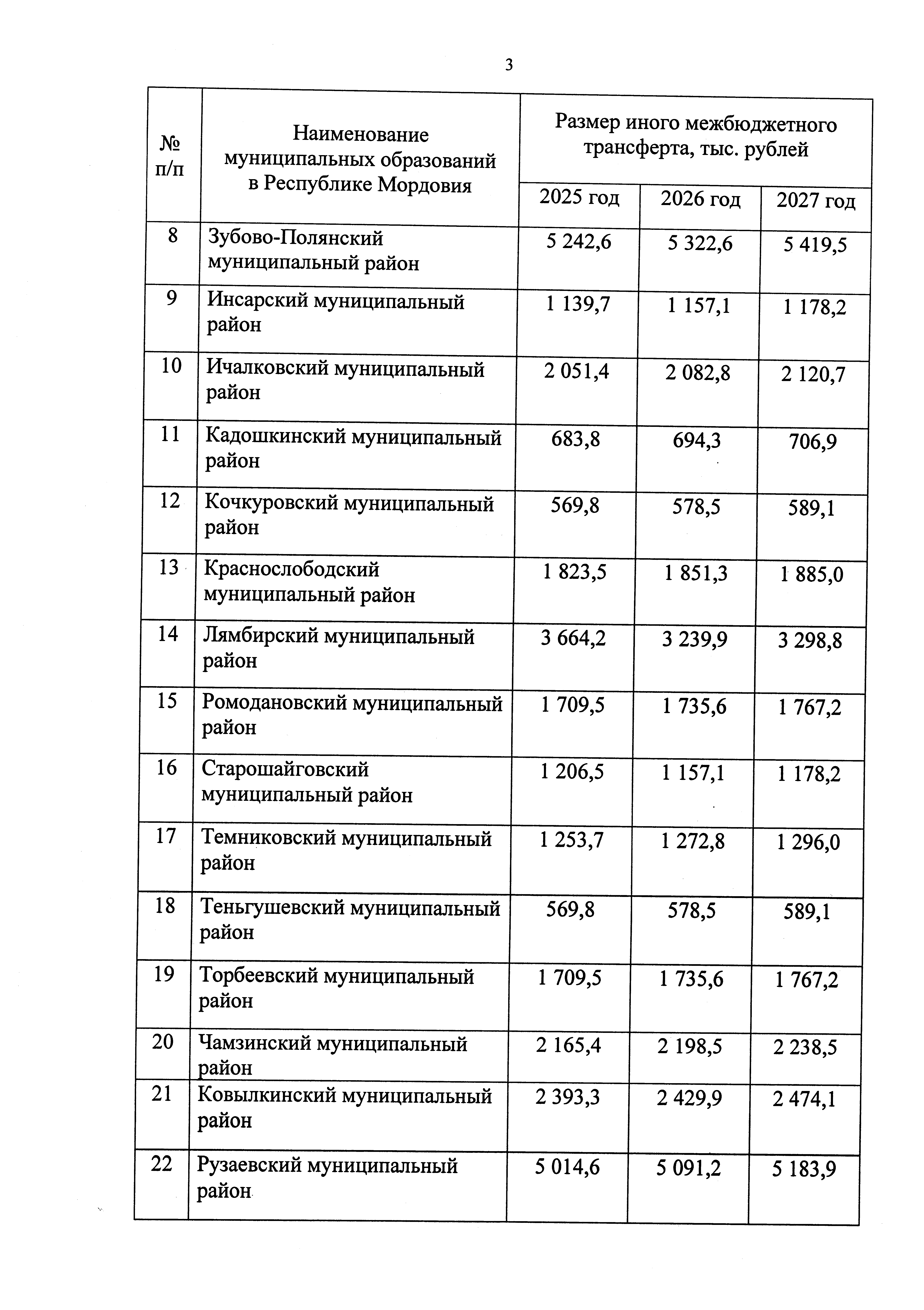"О внесении изменения в распределение иных межбюджетных трансфертов бюджетам муниципальных районов в Республике Мордовия и городского округа Саранск на проведение мероприятий по обеспечению деятельности советников директора по воспитанию и взаимодействию с детскими общественными объединениями в общеобразовательных организациях на 2025 год и плановый период 2026 и 2027 годов"