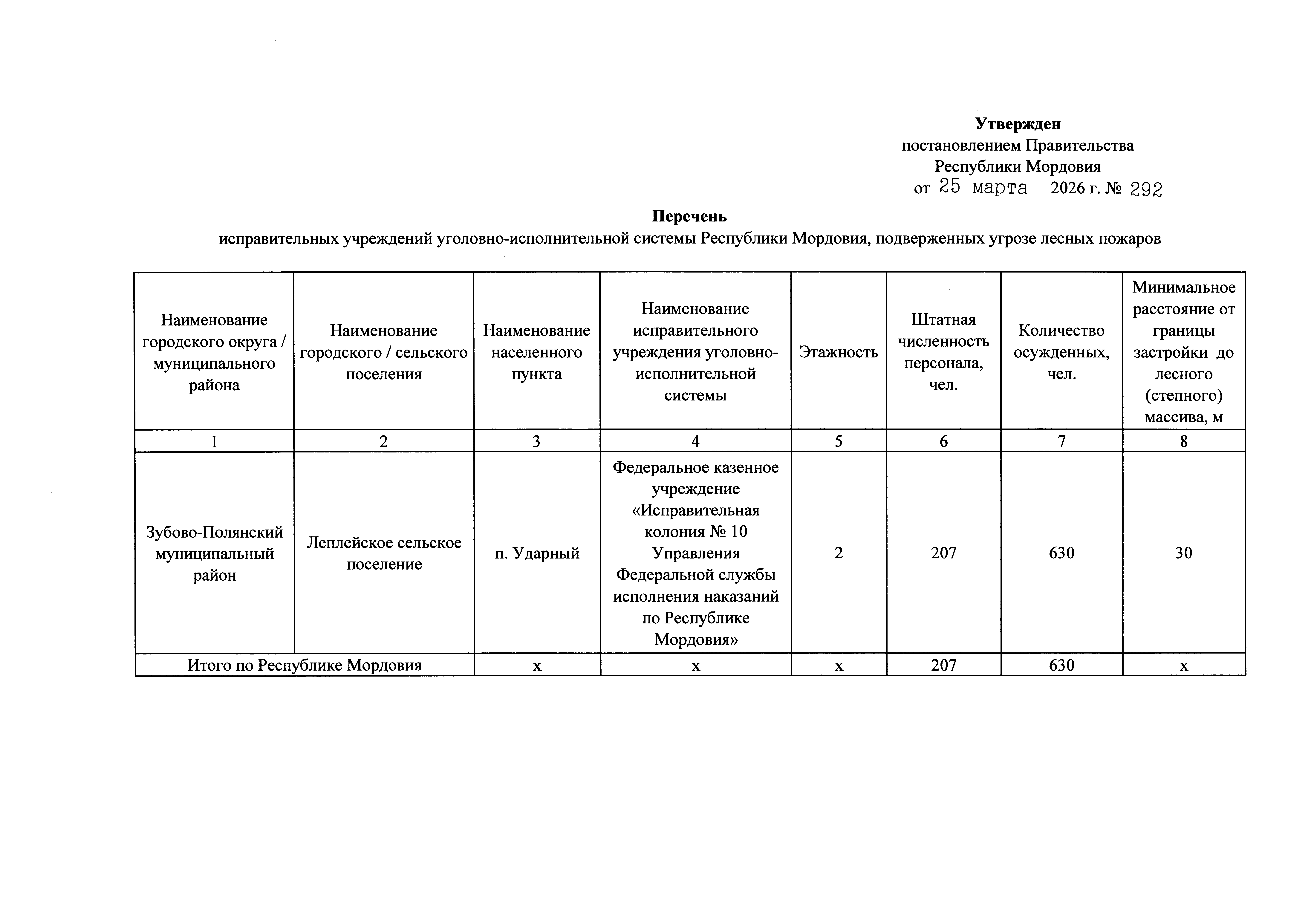 Постановление Правительства Республики Мордовия от 25.03.2026 № 292